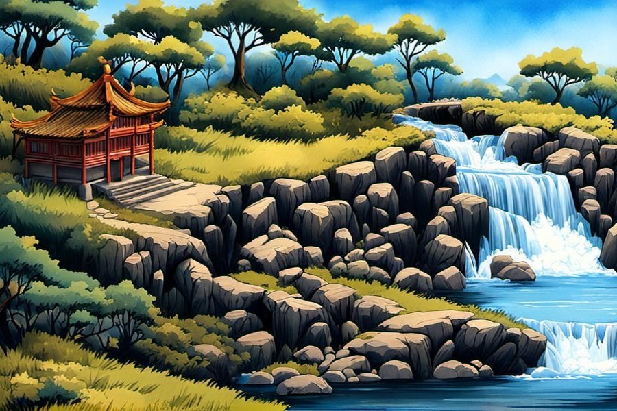 一、先用大筆蘸淡墨,中鋒帶側畫一塊長石,點幾點苔。二、用石黃。石黃是粉質顔料,不透明,可以顯示葫蘆不透明果實的重量感。不能用藤黃,藤黃是透明體,用後無質感。石黃根據畫的效果需要,加少量赭石,增加顔色層次的變化,表示葫