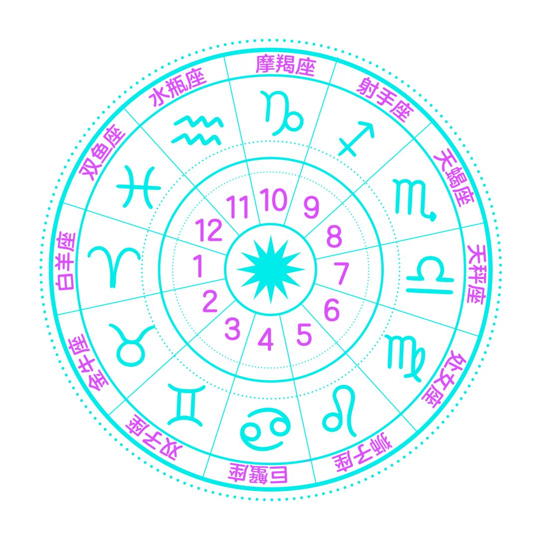 这里为了更好理解,我们先粗暴地将星盘看成是12个宫位,对应12星座。将12星座想象成住在12个宫位的人,虽然因为大家星盘不同,12个宫的人也不同,但由于每个宫位对我们而言的定义与性质是不变的,因此我们与12宫人之间的相处模式也遵循着一定的规律。