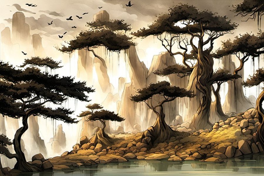 幕布透光,幕後人影浮動。陳師傅粗糙的手指在木杆上輕點幾下,幾聲“叮”的輕響如碎石濺落。幕的另一邊,魏三爺鼓起腮幫,唢呐“嘟”地破了個音,一縷微燙的銅腥味便混入後台的浮塵裏。白熾燈泡驟然刺亮幕布,那薄薄一層油絹,隔開了